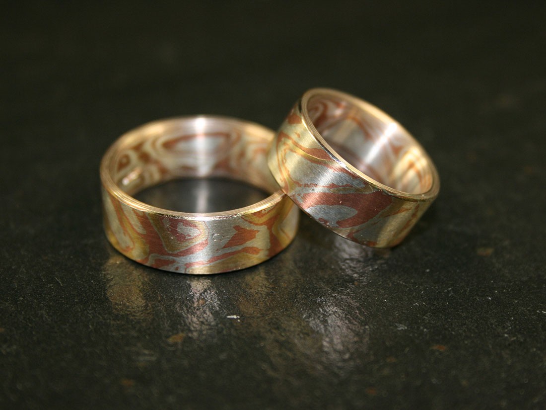 Mokume Gane: 750/-Gelbgold, 925/-Silber, Kupfer
